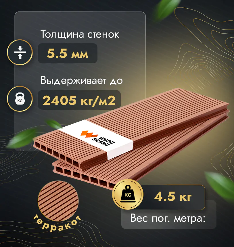 Террасная доска из МПК – это по-настоящему «каменная доска» - революционный материал в загородном строительстве. В основе доски из МПК - минеральная мука и связующие полимеры.