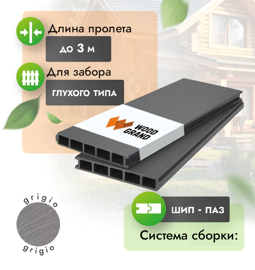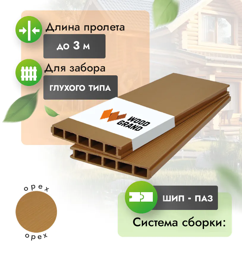 Наши заборные доски из ДПК выдерживают до 3318 кг/м2, влагостойкие, не требуют ухода.